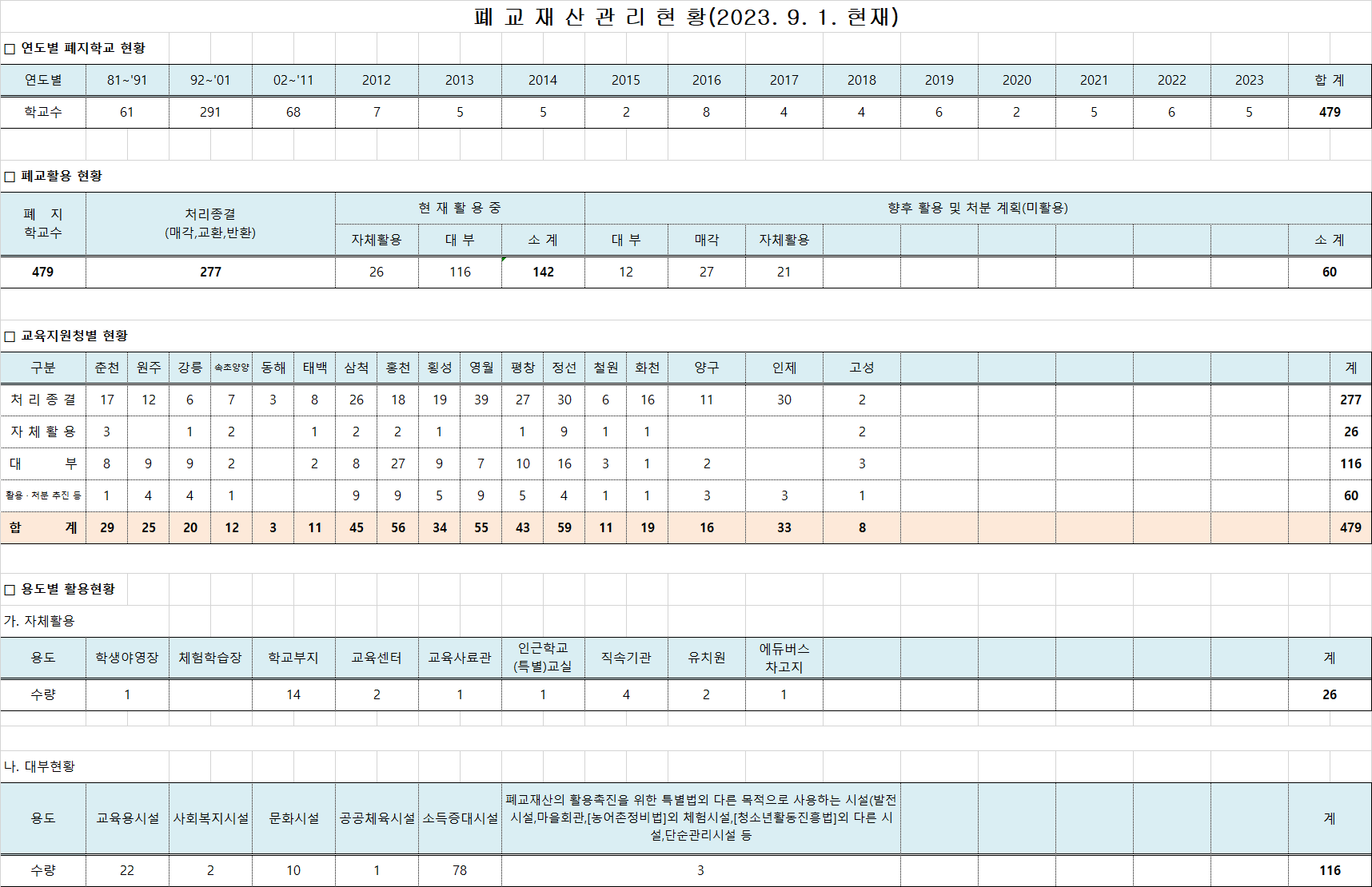 2023.9.1.자 폐교관리 현황