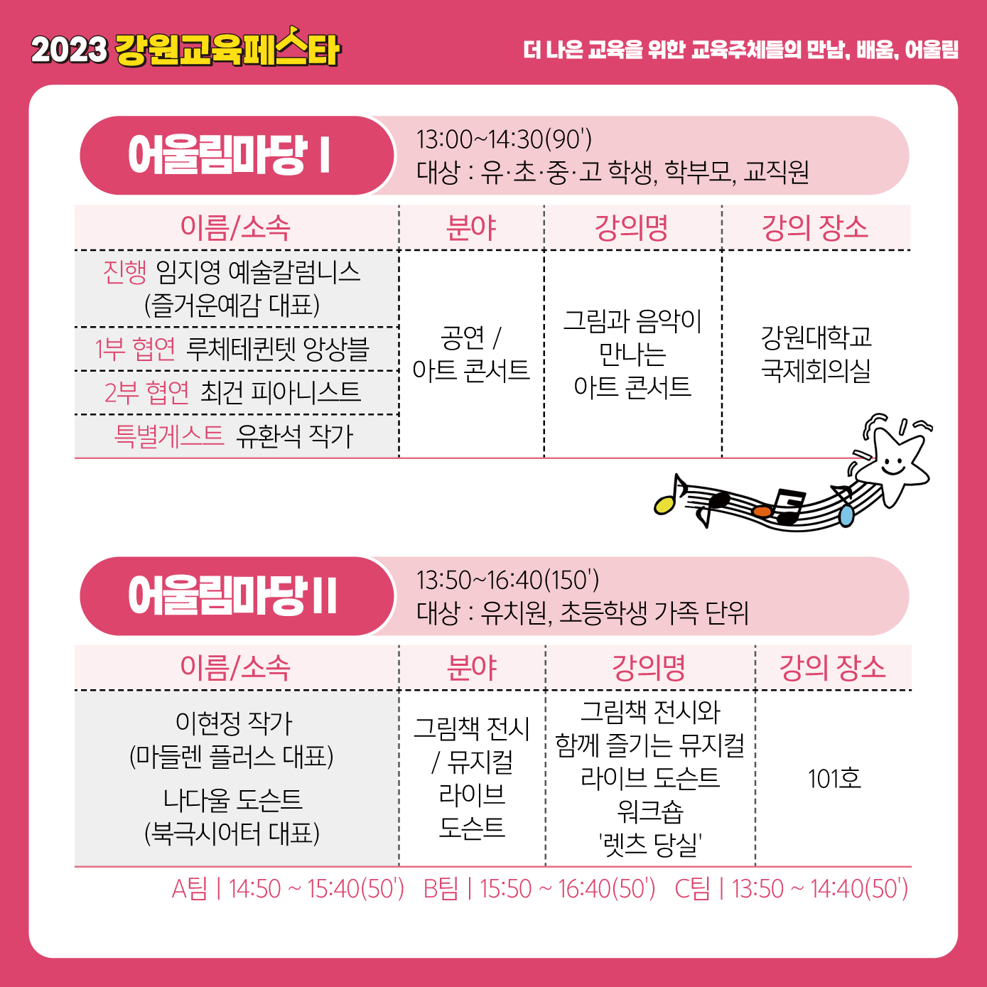 ◦ 어울림 마당: 교육주체가 함께 어울려 참여할 수 있는 교육퍼포먼스