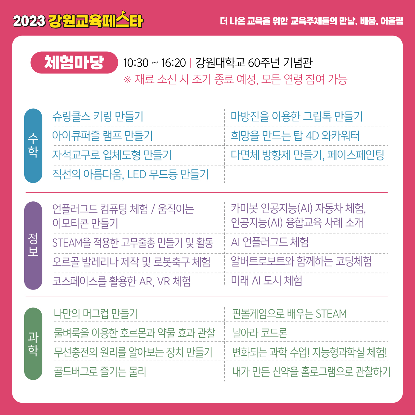 ◦ 체 험 마 당: 학생 참여 테마 체험 부스(과학, 수학, 정보) 체험 활동